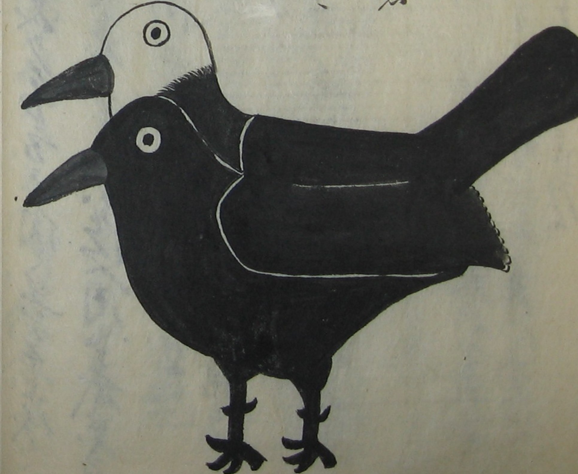 描かれた頭が二つある鳥の絵です。